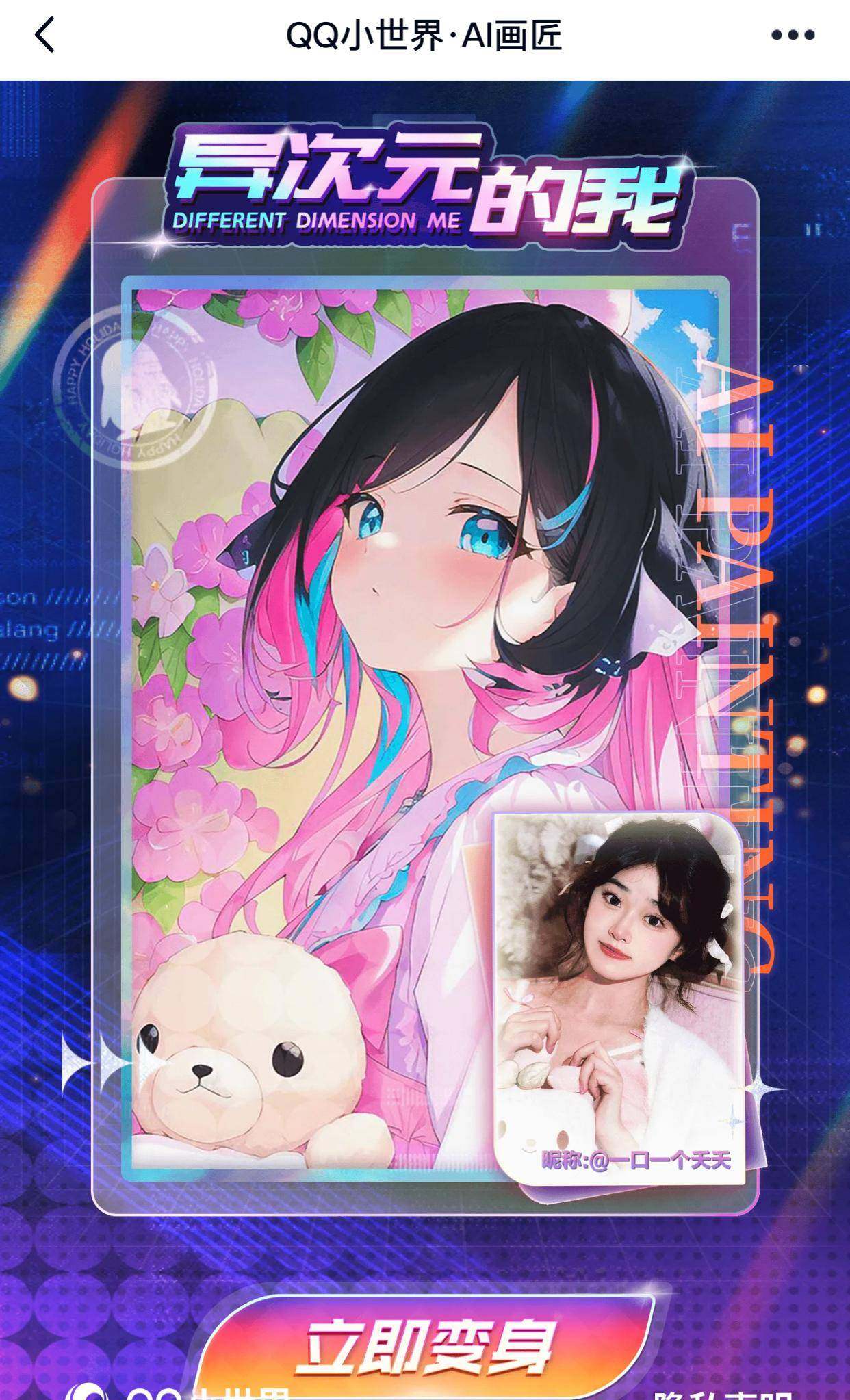 作画的方式跟抖音相似,选择一张自己的照片,然后ai帮你生成二次元漫画图,生成之后可以保存图片到手机上。