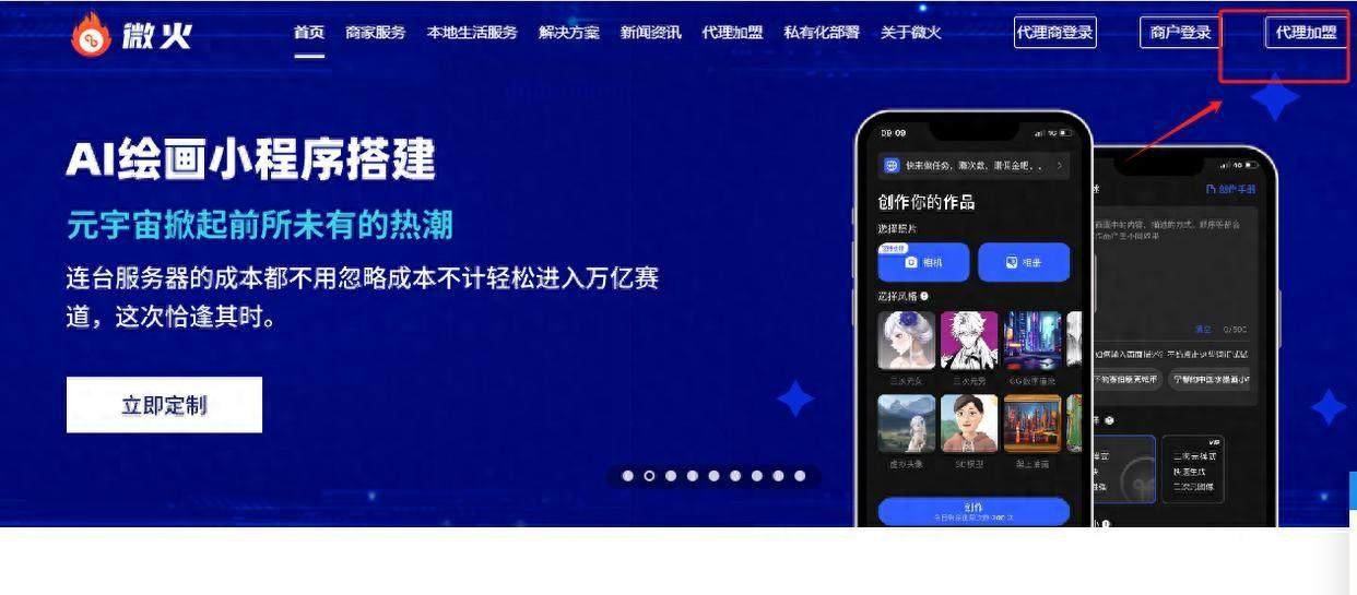 首先,找到共享wifi的官网微火,wei.gg,在网站上点击右上角的“代理加盟”,根据页面上的信息填写资料。