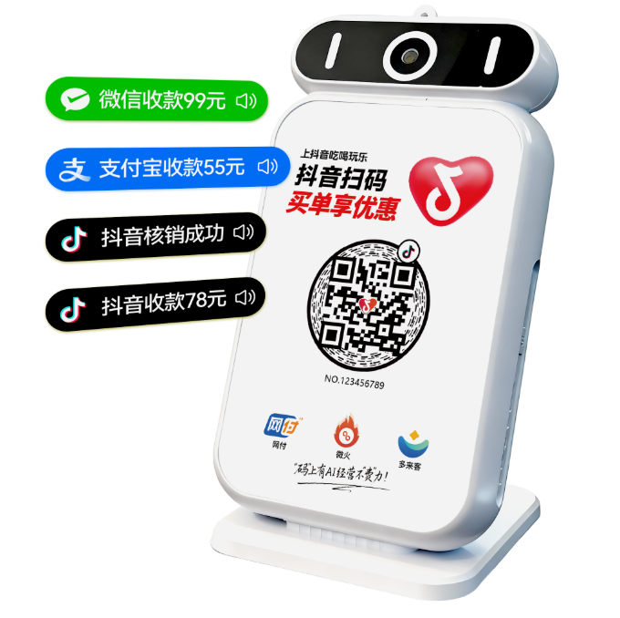 集收银、核销、AI营销为一体的智能音响,专为商户设计,有效提升经营效率